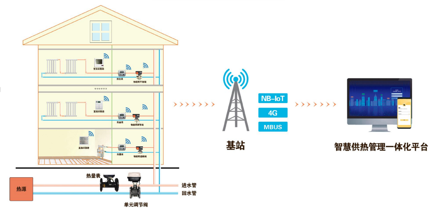 1.  全域感知(IoT): 在樓宇熱力入口、單元管道井及用戶室內(nèi)部署溫濕度、壓力、流量傳感器,構建起覆蓋“源-網(wǎng)-站-戶”的全鏈條數(shù)據(jù)感知網(wǎng)絡。