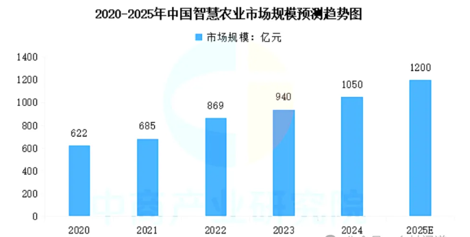 在全球智慧農(nóng)業(yè)市場的快速增長中,中國也扮演著重要角色。中國作為農(nóng)業(yè)大國,對智慧農(nóng)業(yè)技術(shù)的需求和應(yīng)用尤為迫切。政府和企業(yè)紛紛加大投入,推動智慧農(nóng)業(yè)技術(shù)的研發(fā)和應(yīng)用。【鄉(xiāng)村聞道】認(rèn)為智慧農(nóng)業(yè)市場規(guī)模連年增長,2024年中國智慧農(nóng)業(yè)市場規(guī)模超千億元,達(dá)到約1050億元,預(yù)計2025年將達(dá)到1200億元。
